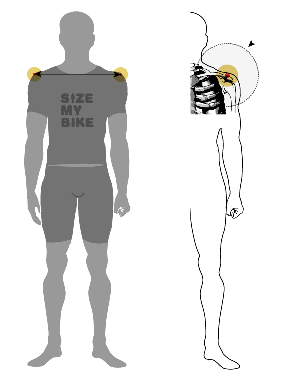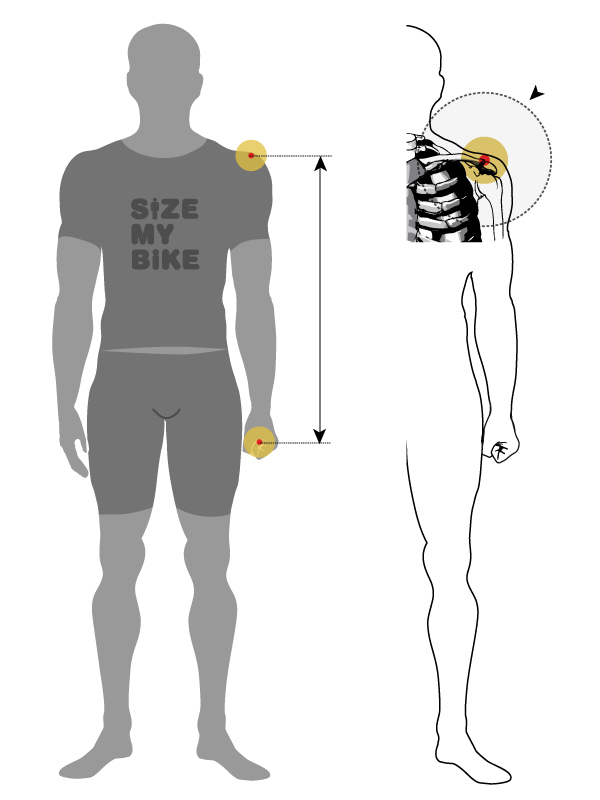 Measure the distance from the middle of your clenched fist to the acromial extremity of clavicle. A way to measure this distance is to grip a cylindrical object in your hand and measure the distance between the center of this object and the extremity of the clavicle. You must keep your arm straight and along your body. It is suggested to measure both arms and use the average.