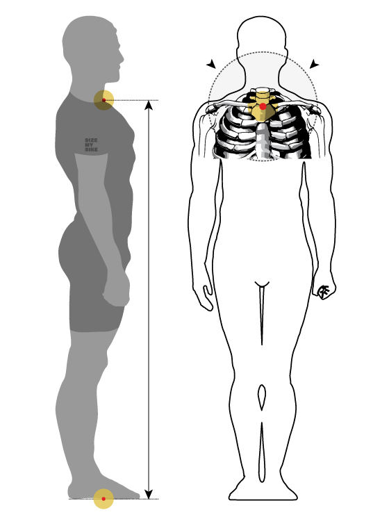 Measure the distance from the floor to the top of the sternum (suprasternal notch). The suprasternal notch is located at the hollow at the base of the throat. This hollow is located between both sternal extremities of the clavicles.